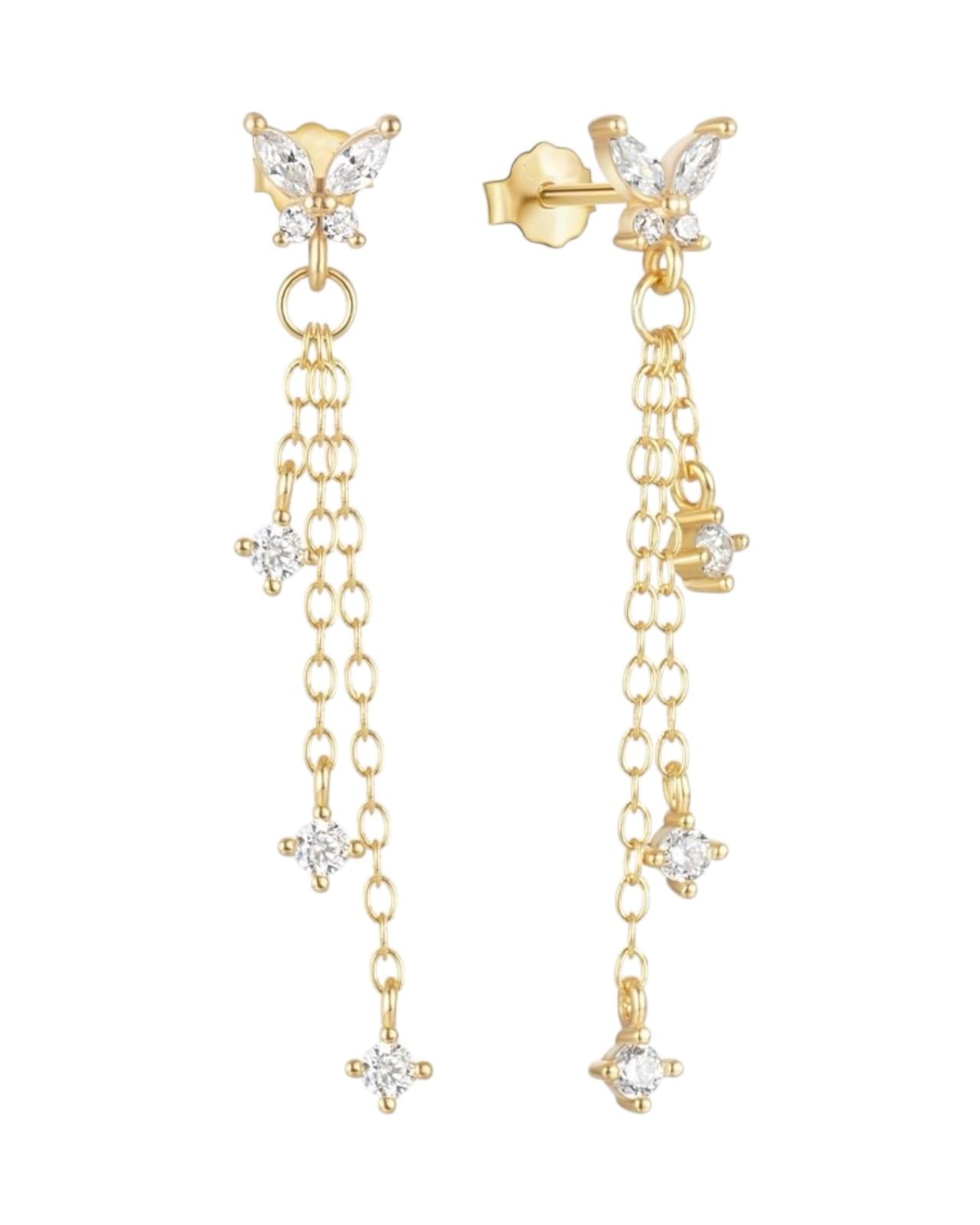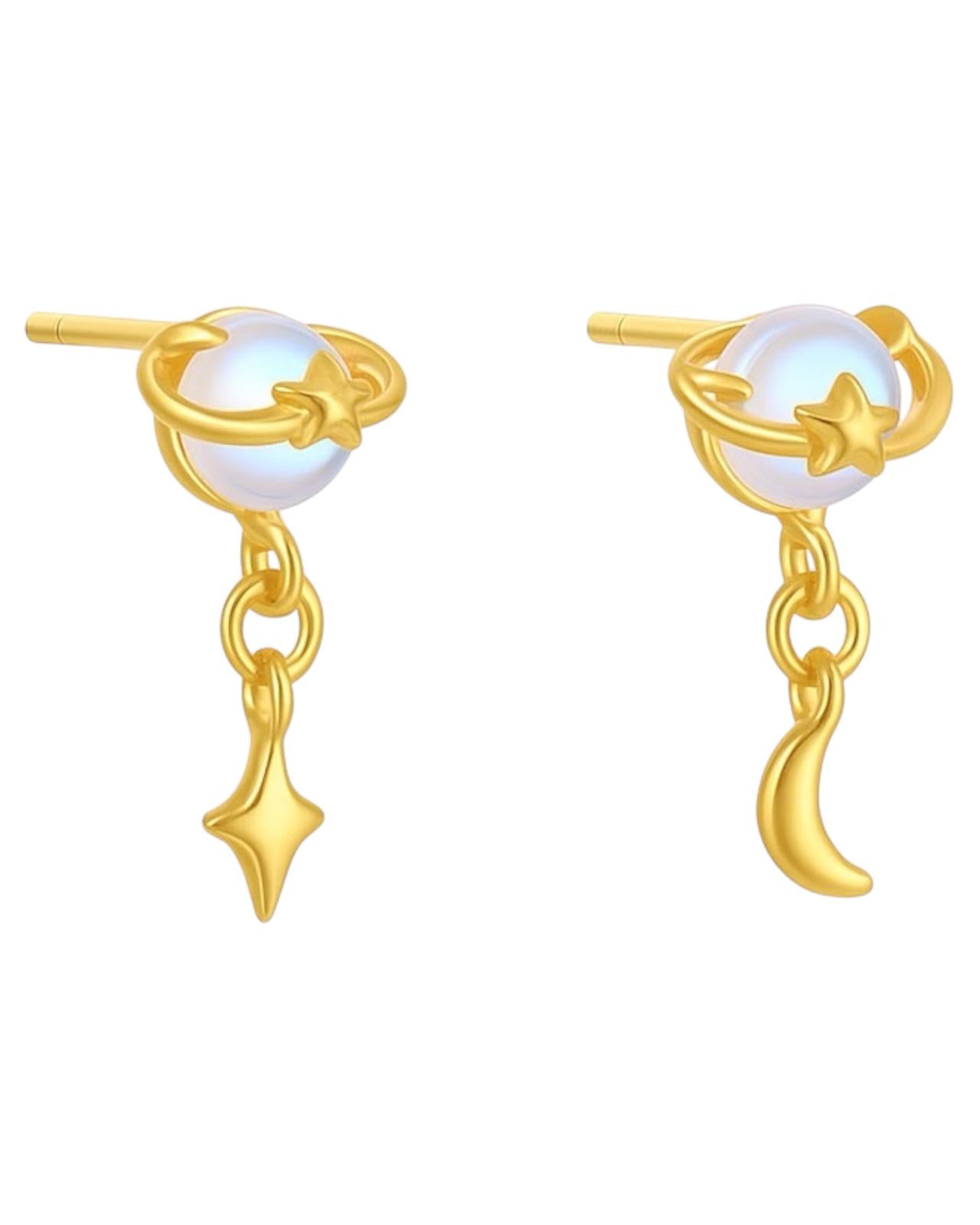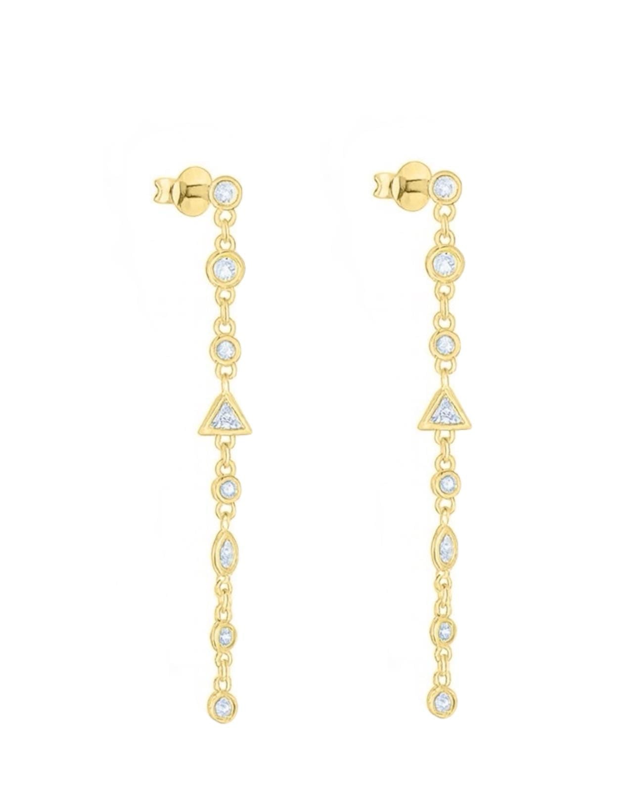 Goldene Ohrringe, dekorativer, baumelnder geometrischer Anhänger – 925er Silber
