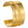 Ein einzigartiges Armband mit spiegelndem Glanz, bestehend aus drei vergoldeten Gliedern, die in einer Reihe dezenter Zirkonia enden. Seine minimalistische Form und die präzise Verarbeitung vereinen Eleganz mit moderner Ausdruckskraft.