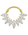 Ein atemberaubender Klicker, der sofort ins Auge fällt – gefertigt aus 925er Sterlingsilber und 14-karätig vergoldet, besticht er durch acht funkelnde Zirkonia im Marquiseschliff. Jeder Stein ist mit juwelierhafter Präzision gefasst und bildet eine kronenartige Fassung, die vor Brillanz und Eleganz nur so strotzt.