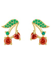 Charmant, verspielt und farbenfroh – diese Ohrringe aus 925er Silber, plattiert mit 18-karätigem Gold Sie ziehen die Blicke auf sich wie ein Sonnenstrahl an einem Sommertag. Zwei herzförmige Rubinzikone bilden markante Kirschen, während ein mit grünen Steinen besetztes Blatt Frische und außergewöhnlichen Charme verleiht.
