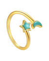 Pierścionek złoty z turkusowymi gwiazdkami i księżycami - SREBRO 925