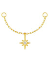 Subtelny łańcuszek do piercingu, który przyciąga blaskiem niczym nocne niebo. Wykonany ze srebra próby 925, pozłacany 14-karatowym złotem, ozdobiony delikatną zawieszką w kształcie gwiazdy z błyszczącym cyrkoniowym akcentem. Symbol światła i intuicji – idealny dla tych, którzy lubią biżuterię z duszą. Doskonale komponuje się z kolczykami w stylu helix, lobe czy conch, dodając im kobiecej finezji i lekkości.