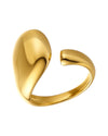 Zmysłowy, płynny kształt tego pierścionka to hołd dla naturalnych form i współczesnej elegancji. Jego otwarta konstrukcja subtelnie oplata palec, dając poczucie lekkości i wyjątkowego stylu. Złocista tafla lśni jak światło o poranku – cicho, ale z klasą.